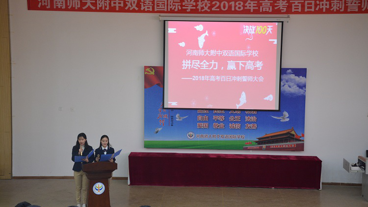 厲兵秣馬,六月出征,為了激發(fā)高三學(xué)子的拼搏精神,增強(qiáng)迎戰(zhàn)高考的信心,在距高考只有100天的日子里,2月28日下午我校高三年級(jí)在道德講堂隆重舉行“拼盡全力,贏下高考”高三百日誓師大會(huì)。校長滑秀林、副校長羅強(qiáng)、黨支部書記李現(xiàn)山、學(xué)部主任溫志忠、辦公室主任王有波、后勤部主任李衛(wèi)忠、高三年級(jí)主任白運(yùn)亮等領(lǐng)導(dǎo)及高三全體師生和部分學(xué)生家長代表參加了此次誓師大會(huì)。