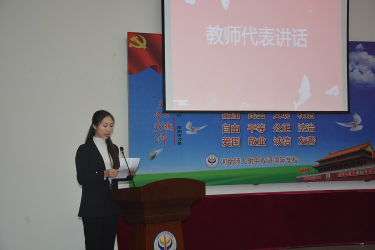 “請(qǐng)相信,一百天的汗水很可能會(huì)換來一生的幸福;但請(qǐng)記住,一百天的安逸肯定會(huì)留下一輩子的遺憾?!笔墙處煷碓茖?duì)高三全體學(xué)生的叮嚀。她的發(fā)言飽含激情,擲地有聲,表達(dá)了高三全體老師們的決心與斗志——愿和學(xué)生一起并肩作戰(zhàn),愿與他們風(fēng)雨同舟。