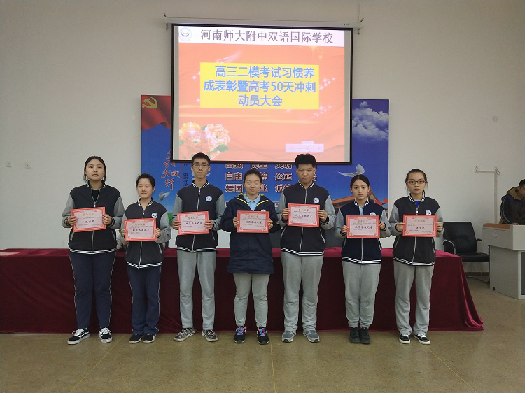 為了進一步督促學生養(yǎng)成良好的考試答題習慣,再一次給高三學子樹立信心、加油鼓勁,4月10日下午,高三年級全體師生在道德講堂開展高三二??荚嚵晳T養(yǎng)成表彰暨高考50天沖刺動員大會。