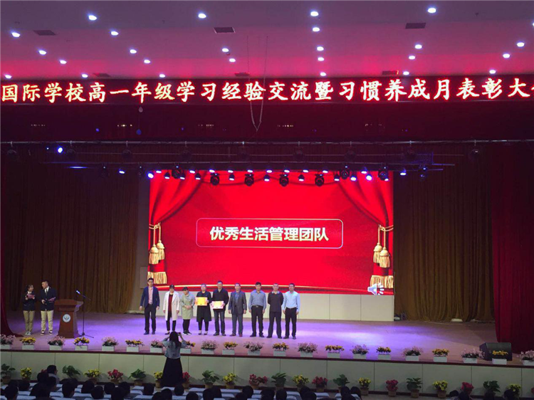 隨后,學校對在習慣養(yǎng)成月中表現(xiàn)突出的同學和團體進行了表彰,分別進行了十星表彰、優(yōu)秀班集體表彰、優(yōu)秀教師團隊表彰和優(yōu)秀宿舍管理團隊表彰。其中獲得優(yōu)秀班集體的是:高一1班、高一2班、高一3班、高一5班、高一8班、高一9班;獲得優(yōu)秀教師團隊的是:高一2班、高一3班、高一5班、高一8班。中學部主任郭學明和高一年級主任胡騰飛為獲獎學生和團體進行了頒獎。