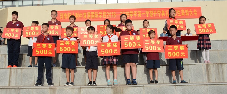 伴著初秋的腳步,新的學(xué)年如約而至。9月3日下午,河南師大附中雙語國際學(xué)校全體師生齊聚在學(xué)校操場,舉行新學(xué)年的開學(xué)典禮暨學(xué)生表彰大會。我校董事長鄧志軍、校長滑秀林及中層以上領(lǐng)導(dǎo)出席典禮并在主席臺就座,大會由羅強(qiáng)副校長主持。