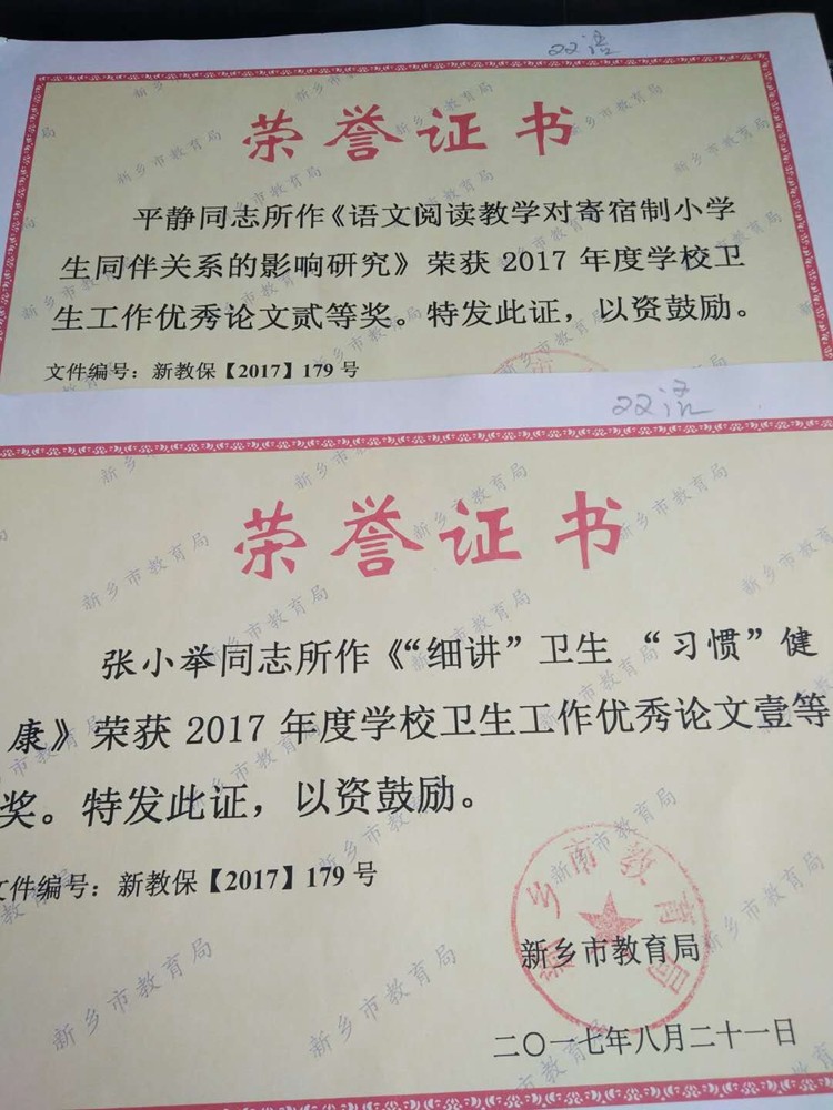 在2017年新鄉(xiāng)市健康教育優(yōu)質(zhì)課評(píng)比中,卞凈老師《飲食與健康》榮獲市一等獎(jiǎng),吳克彥老師《拒絕校園暴力》、祝自然老師《學(xué)會(huì)合作》喜獲市二等獎(jiǎng);在新鄉(xiāng)市衛(wèi)生工作優(yōu)秀論文比賽中,我校張小舉老師榮獲一等獎(jiǎng),平靜老師喜獲二等獎(jiǎng)!在此對(duì)以上獲獎(jiǎng)老師表示祝賀!