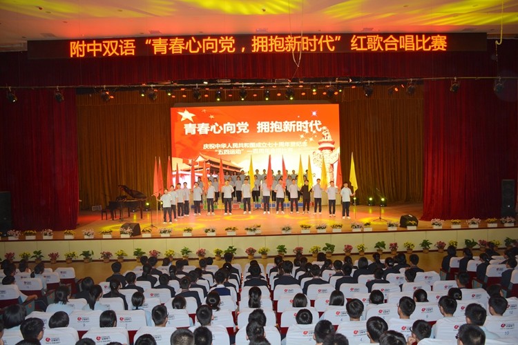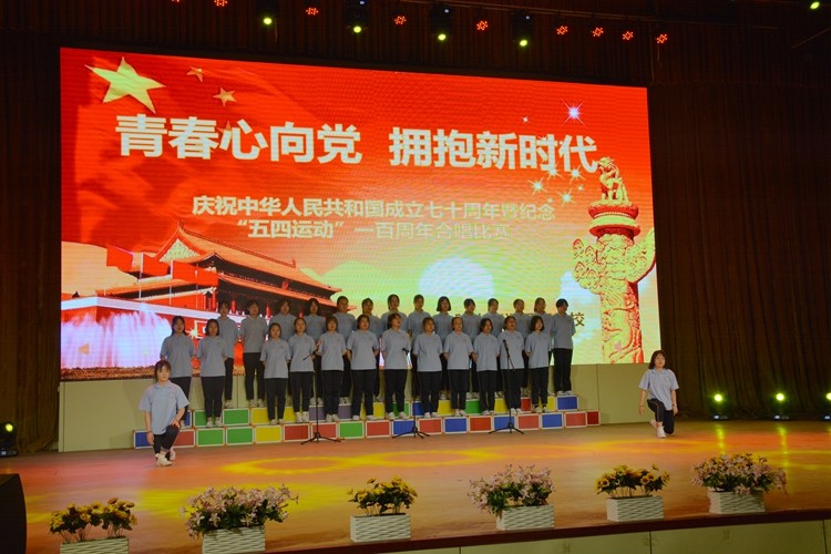 為進一步活躍校園文化生活,陶冶學生愛國、愛校的高尚情操,營造慶祝新中國成立七十周年的良好氛圍,2019年5月21日,我校開展以“青春心向黨 擁抱新時代 ”為主題的慶祝中華人民共和國成立七十周年暨紀念“五四運動100周年”紅歌比賽。