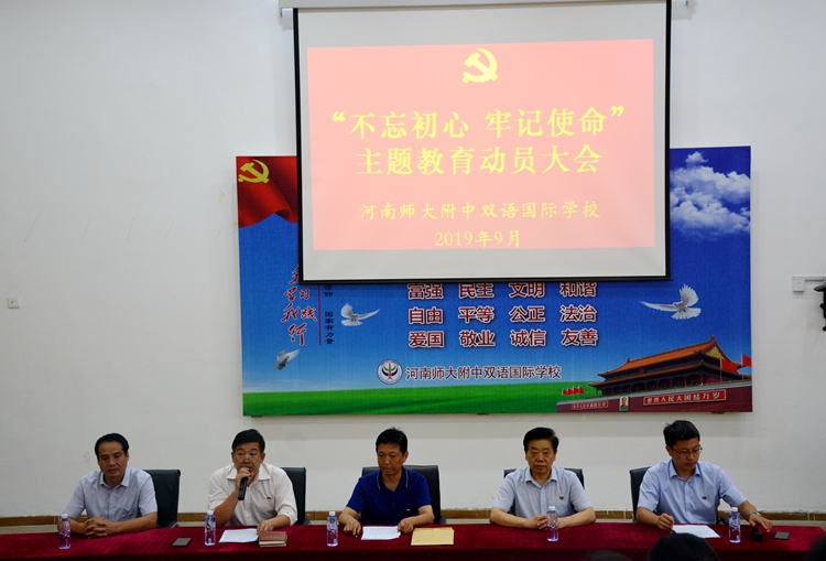 為深入學習貫徹全市“不忘初心、牢記使命”主題教育工作會議精神,9月23日,河南師大附中雙語國際學校召開“不忘初心、牢記使命”主題教育布置會,中層以上領導參加了會議。要求認真學習中央關于主題教育的最新精神,充分認識開展主題教育的重大意義,準確把握主題教育的目標任務,對學校主題教育作出整體部署。