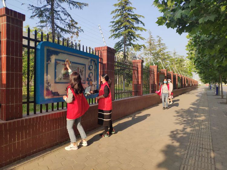 活動中,黨員志愿者們積極發(fā)揮奉獻精神,不怕臟、不怕累,有的擦拭宣傳欄,有的清除廣告,有的提桶打水,有的撿拾垃圾,熱情洋溢、干勁十足,讓校園內(nèi)外面貌煥然一新。