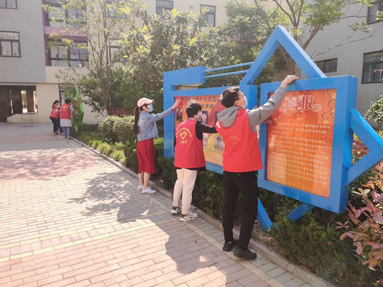 為扎實開展“迎五一”清潔家園行動,更好地做好疫情防控工作,在學(xué)校黨總支的統(tǒng)一安排下,4月29—30日,附中雙語全體黨員開展了一場別開生面的“迎五一”衛(wèi)生健康大行動黨員志愿者服務(wù)活動,以黨支部為單位對校園內(nèi)及外墻宣傳欄、公告欄、校門附近等區(qū)域進行了全面清潔。