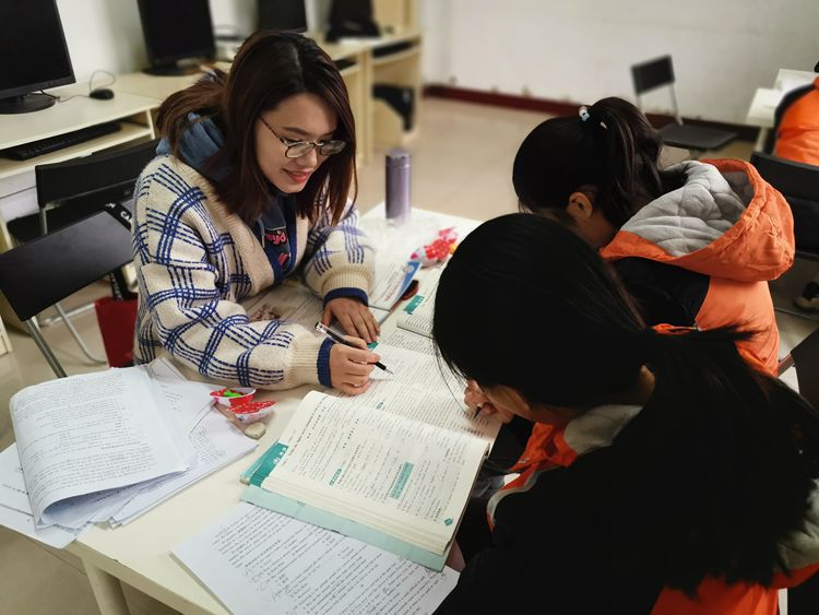 太陽村負(fù)責(zé)人侯老師熱情接待了我校支教的老師,并向大家介紹了太陽村情況。侯老師和張曉崢老師根據(jù)學(xué)生的年級分布對本次送教活動(dòng)進(jìn)行了統(tǒng)籌安排。閆曉穎、張艷莉、尹西孟3位老師負(fù)責(zé)輔導(dǎo)九年級學(xué)生;張曉崢、錢瑩、李東旭3位老師負(fù)責(zé)輔導(dǎo)八年級學(xué)生;程曉、魏艷廷2位老師負(fù)責(zé)輔導(dǎo)七年級。看著孩子們對知識渴求的目光,老師們因材施教,傳授知識和方法。孩子們更是惜時(shí)如金,不放過每一次請教的機(jī)會(huì)。