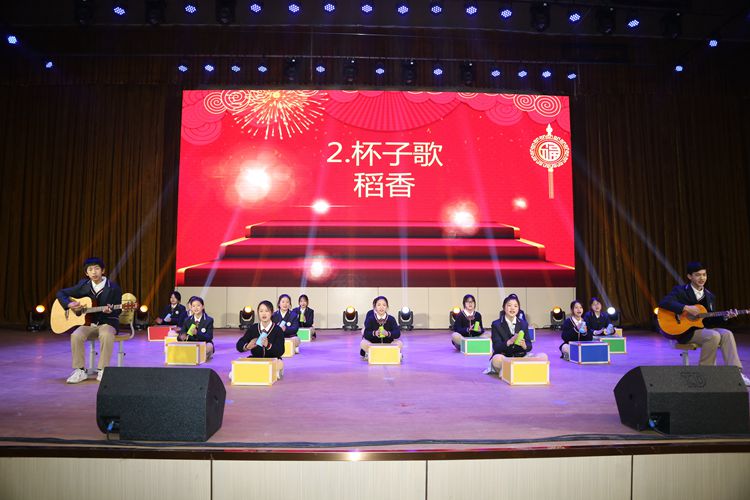 匯報(bào)演出在《河南師大附中雙語(yǔ)2020年大事記》的點(diǎn)滴回顧中拉開(kāi)帷幕。樂(lè)起舞動(dòng),激情四射的開(kāi)場(chǎng)舞《YES OK》調(diào)起了全場(chǎng)氣氛,初中音樂(lè)班帶來(lái)的杯子歌《稻香》,杯子與桌面拍打的聲音與音樂(lè)交織,時(shí)而緊張有序,時(shí)而輕松舒緩,手中的杯子不再只是杯子,而是化身為一件充滿魔力的樂(lè)器,簡(jiǎn)單的動(dòng)作傳遞出無(wú)限的歡樂(lè),讓聽(tīng)眾沉浸在音樂(lè)節(jié)奏的獨(dú)特魅力中。初一年級(jí)帶來(lái)的英語(yǔ)課本劇《go to the zoo》讓學(xué)生在娛樂(lè)中實(shí)踐,在交流中學(xué)習(xí),在展演中感受,在活動(dòng)中成長(zhǎng),彰顯了雙語(yǔ)多彩教育的目標(biāo)和成果。