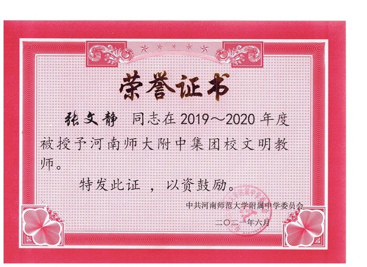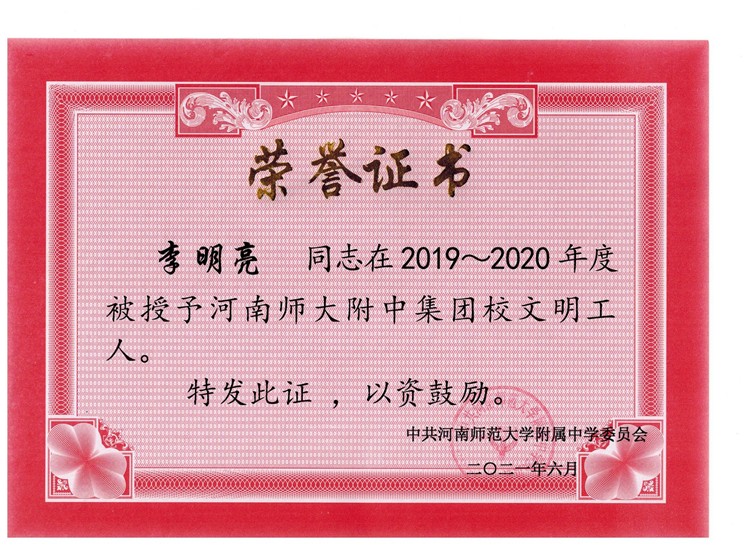 熱烈祝賀我校劉欣欣老師被評為附中集團(tuán)校級文明干部,李翔、馮智昊、張文靜、楊慧諾、陳輝陽、劉淑芳、王彬、劉龍等老師被評為附中集團(tuán)校級文明教師,李明亮、李靖老師被評為附中集團(tuán)校級文明職工。