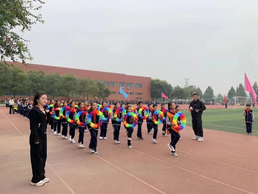 上午8:30大隊輔導(dǎo)員張慧娟宣布開幕式開始,首先是五六班的國旗方陣、隊旗方陣入場,教師隊伍組成的裁判員方陣緊隨其后。