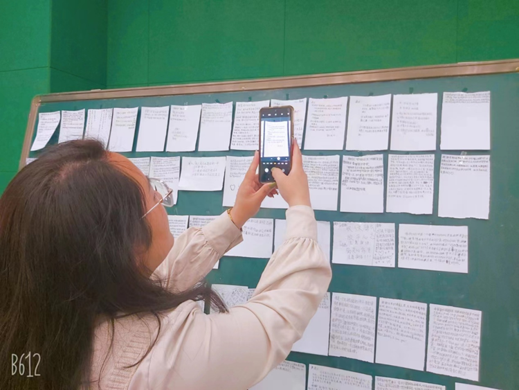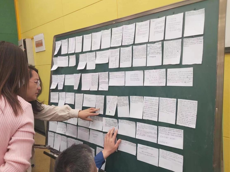 講座進行之前,主持人宋云云老師與家長將學生匿名寫的《給家長的建議》粘貼在黑板上供家長觀看了解,便于父母們更好的了解孩子的真實感受。