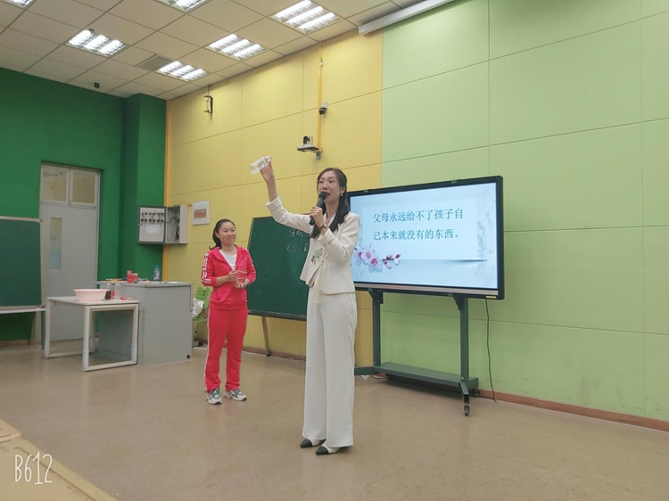 袁老師首先給大家分享了自己的學(xué)習(xí)經(jīng)歷,點明了家庭教育的重要性,然后指出家庭教育中父母錯誤的言行——嘮叨、比較、打罵、忽視、諷刺、溺愛、懷疑,猶如一把把尖刀,刺穿孩子的內(nèi)心,破壞良好的親子關(guān)系,最終導(dǎo)致教育的失敗。期間,袁老師現(xiàn)場與家長互動,或現(xiàn)場采訪,或角色扮演,或邀請家長上臺體驗,直觀生動地展示了家庭教育中的七把刀對孩子造成的傷害,并且補充了很多實用的家庭教育干貨知識,例如:怎樣才能不嘮叨、批評的原則、如何贊美孩子等。
