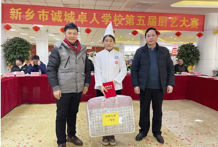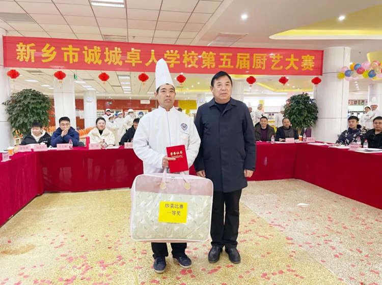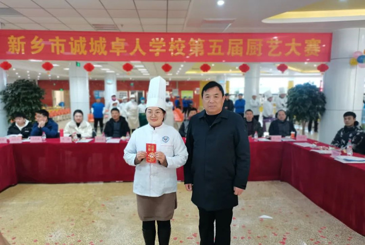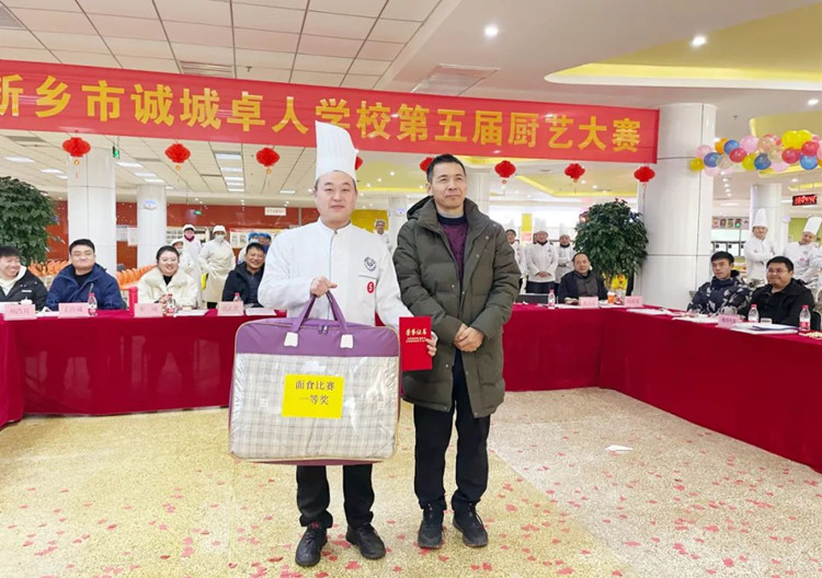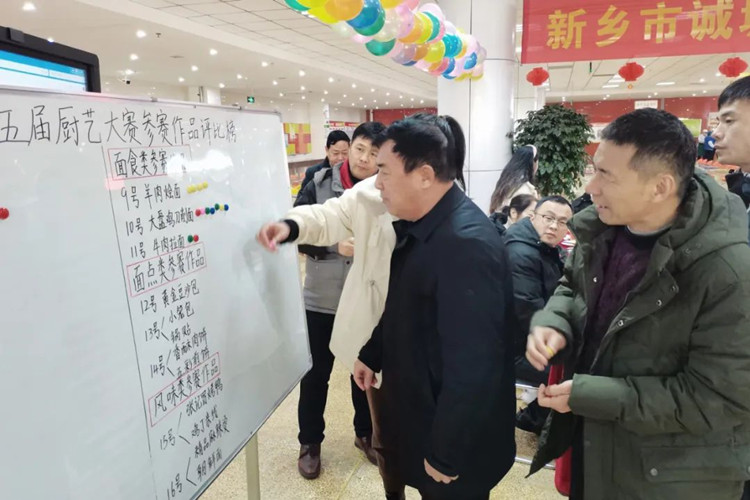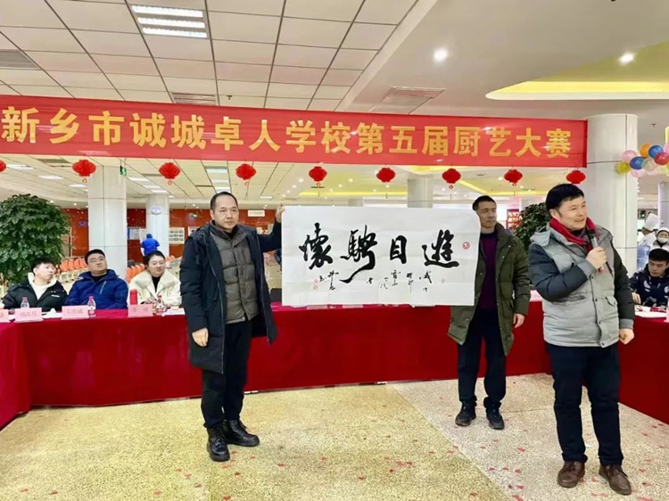 學校校長滑秀林、誠城集團教育總監(jiān)兼執(zhí)行校長楊修家、副校長溫志忠、校工會主席兼后勤保障部主任李衛(wèi)忠等領導、家長、學生代表70余人出席本次廚藝大賽,國家一級書法家、河南省太行書畫研究院院長曹揚憲和紅旗區(qū)市場監(jiān)管所張延國科長親臨現場。大賽分兩個環(huán)節(jié),一是現場廚師的才藝展示,二是對學生開展廚藝比拼(短視頻形式)進行總結表彰,學校食品安全專管員路國偉負責主持。