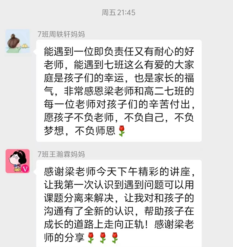 梁老師憑借深厚的專業(yè)知識與豐富的班級管理經(jīng)驗,深入剖析了高中生人際關(guān)系的特性與常見難題。針對這些問題,梁老師引入 “課題分離” 理念,幫助家長與學(xué)生厘清人際交往的邊界。她指出,高中生面臨學(xué)業(yè)和自我成長的雙重壓力,人際關(guān)系的處理對他們的身心健康和學(xué)業(yè)成績有著直接影響。為了讓家長更直觀地理解,梁老師結(jié)合大量生動鮮活的案例,從不同角度解讀了孩子們在人際交往中的困惑與需求。此外,梁老師分享了一系列實用的人際交往技巧,包括熱情主動交往、理解尊重他人、秉持真誠原則、學(xué)會寬容諒解,以及擺脫過度依賴心理。家長們認(rèn)真聆聽,不時做著筆記,現(xiàn)場學(xué)習(xí)氛圍濃厚。
