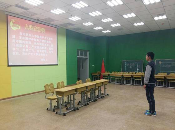 隨后,伴著雄壯的團(tuán)歌,面對(duì)鮮紅團(tuán)旗,在新團(tuán)員代表劉鑫源同學(xué)的帶領(lǐng)下,全體新團(tuán)員舉起右手莊嚴(yán)宣誓:“我志愿加入中國共產(chǎn)主義青年團(tuán),堅(jiān)決擁護(hù)中國共產(chǎn)黨的領(lǐng)導(dǎo),遵守團(tuán)的章程……為共產(chǎn)主義而奮斗?!鼻啻菏难员磉_(dá)了同學(xué)們對(duì)共青團(tuán)組織的無限向往和為團(tuán)組織增光添彩的豪邁激情!