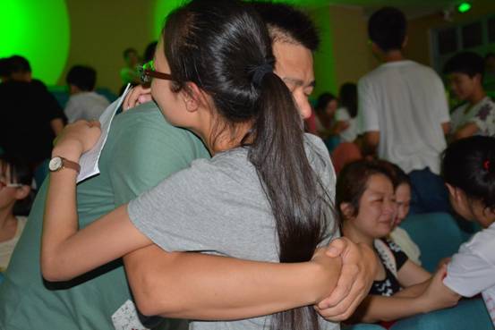 隨后,進(jìn)入學(xué)生和家長的互動環(huán)節(jié)——吹過心靈的風(fēng)。學(xué)生代表馬美汀同學(xué)上臺念出了自己在寫作課上給爸爸媽媽寫的信,在這位同學(xué)發(fā)言結(jié)束之后,全體學(xué)生站起給身后的父母大聲念出了自己寫的信,對父母說聲“我愛你”并和父母深情擁抱,在這么溫馨感人的場景中,不少家長和學(xué)生都已熱淚盈眶……