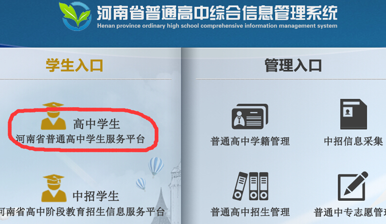 一、登錄河南省普通高中綜合信息管理系統(tǒng)(網(wǎng)址為www.hagaozhong.com) ,點擊“河南省高中學(xué)生服務(wù)平臺”