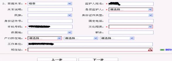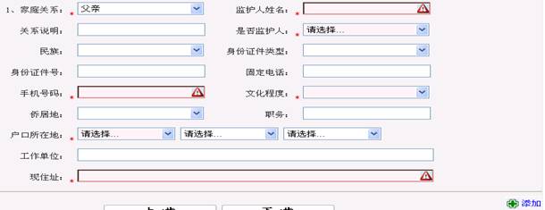 填完監(jiān)護人成員1的相關(guān)信息后,點擊上圖的右下角的“添加”按鈕,接著填寫監(jiān)護人成員2的相關(guān)信息。