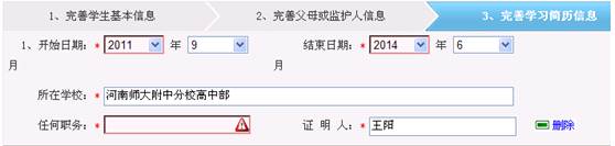 注意:如果原來已存在初中、小學(xué)簡歷,請先刪除后,再依次完善高中、初中、小學(xué)的簡歷。