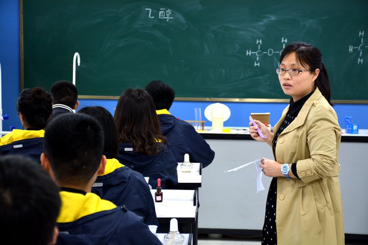 王會(huì)珍老師擁有16年的教齡。教學(xué)經(jīng)驗(yàn)十分豐富。以下是王老師在實(shí)驗(yàn)室為學(xué)生們講解乙醇實(shí)驗(yàn)圖片。