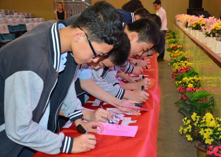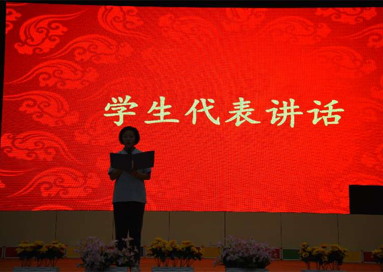 初三年級主任劉欣欣作為教師代表發(fā)言,她從一個北大學(xué)子的心路歷程開始講起,告訴大家:實在堅持不下去了,再堅持一下,就能走向成功。激勵同學(xué)們努力學(xué)習(xí),努力進步。初三(4)班李力先家長作為學(xué)生家長發(fā)言,細數(shù)了孩子兩年來的進步,表達了對孩子成長的殷切希望。初三(3)班丁美戈同學(xué)代表同學(xué)們也向領(lǐng)導(dǎo)老師和家長們表達自己的決心,同時表達了奮斗三百天再創(chuàng)新輝煌的志向。接下來,各個班分別宣誓,在高昂的宣誓聲中,大家的熱情達到了高潮。所有的老師和學(xué)生在中考激勵條幅上簽上字,并且每個學(xué)生把自己填好的中考激勵卡放進了心愿箱。羅強校長最后發(fā)言,表示細節(jié)決定成敗。希望大家能夠踏踏實實,再創(chuàng)佳績。