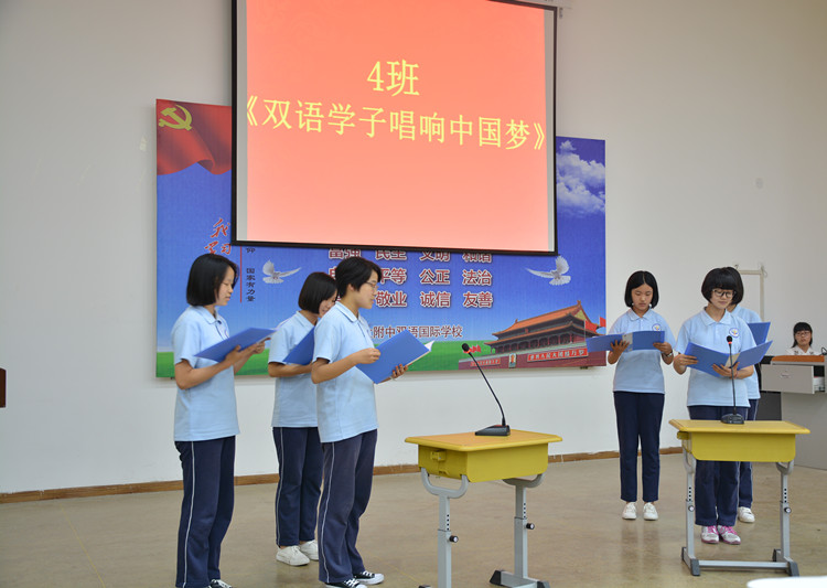 2017年9月26日,河南師大附中雙語國際學(xué)校初三年級(jí)在道德講堂舉辦以富強(qiáng)為主題的社會(huì)主義核心價(jià)值觀大講堂。