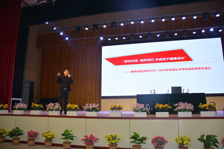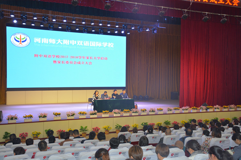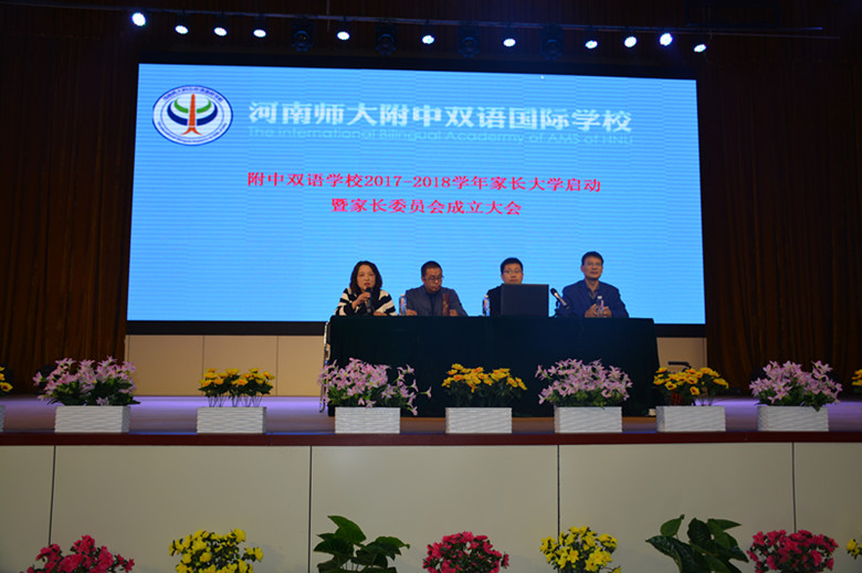 為加強家校交流與溝通,深入推進合力育人,共促孩子健康成長,10月14日,河南師大附中雙語國際學(xué)校舉行2017——2018年家長大學(xué)暨家長委員會成立大會。會議由校團委書記兼學(xué)部副主任郭學(xué)明主持。