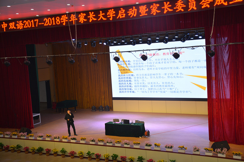 最后,郭學(xué)明主任總結(jié)了羅校長的講話,他介紹了學(xué)校的整體概況,深入闡述了家校共育,攜手同行,構(gòu)建學(xué)校、家庭、社會“三位一體”教育新格局的必要性和重要性,指出成立2017——2018年家長大學(xué)暨家長委員會,既是傳播科學(xué)育人知識,構(gòu)建聯(lián)系家庭與學(xué)校的橋梁和平臺,還是增進家長與孩子實現(xiàn)常態(tài)化平等對話的重要載體。家長既可以充分合理地利用知情權(quán)、評議權(quán)和監(jiān)督權(quán),主動了解學(xué)校的教育理念、方法、成效,也可以及時無償?shù)孬@取實用而又豐富的教育信息、科學(xué)教育方法指導(dǎo)等,發(fā)揮家、校、學(xué)生三方在人才培養(yǎng)方面“目標(biāo)一致、各有側(cè)重、協(xié)作互補、凝心聚力”的合力效應(yīng),共同促進孩子健康成長、全面發(fā)展。