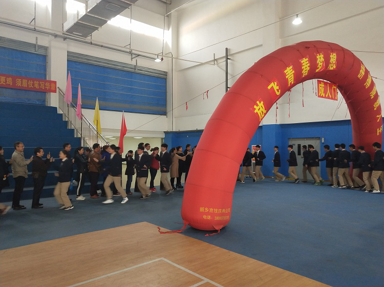 活動(dòng)第一項(xiàng),感受成長。憶往昔崢嶸歲月,現(xiàn)場播放學(xué)生成長經(jīng)歷。“恰同學(xué)少年,風(fēng)華正茂;書生意氣,揮斥方遒?!逼聊簧喜シ诺哪且荒荒痪实漠嬅驷莘饘⒚總€(gè)人帶回當(dāng)時(shí)的場景,軍訓(xùn),拔河,遠(yuǎn)足,運(yùn)動(dòng)會(huì)……這些珍貴的畫面,見證了每個(gè)人的成長。從高一到高三,學(xué)生們由青澀到成熟,難忘的畫面歷歷在目,讓人難忘;步入知禮成仁成人門,學(xué)生依次通過成人門和父母擊掌。伴著歌曲《我要飛得更高》,學(xué)生們通過成人門,個(gè)個(gè)昂首闊步,精神煥發(fā);家長代表和教師代表發(fā)言。精彩的發(fā)言包含著家長和老師的深切期盼,引領(lǐng)著高三學(xué)子走向成人。在場學(xué)生深感受益匪淺,感觸良多。