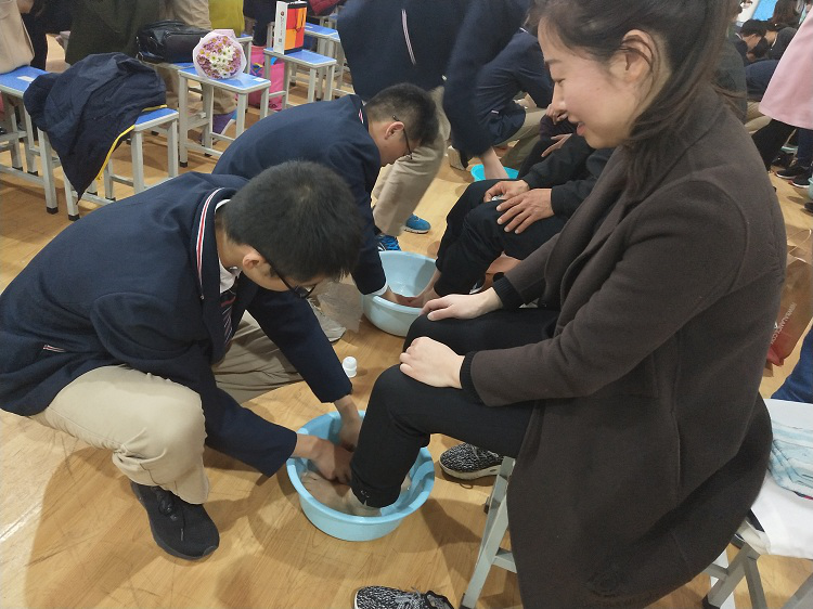 活動(dòng)第二項(xiàng),感恩師長。給老師敬茶,道一句:“老師,您辛苦了!”;給父母洗腳,說一聲:“爸爸媽媽,我愛你”!在學(xué)生代表張一葦?shù)母卸餮葜v之后,全體同學(xué)進(jìn)行了感恩勵(lì)志宣言。從激情澎湃、信誓旦旦的誓詞中可以看出作為當(dāng)代中學(xué)生,作為社會(huì)主義的接班人,他們定能不忘同學(xué)之間的團(tuán)結(jié)友愛,不負(fù)父母恩師的重托。