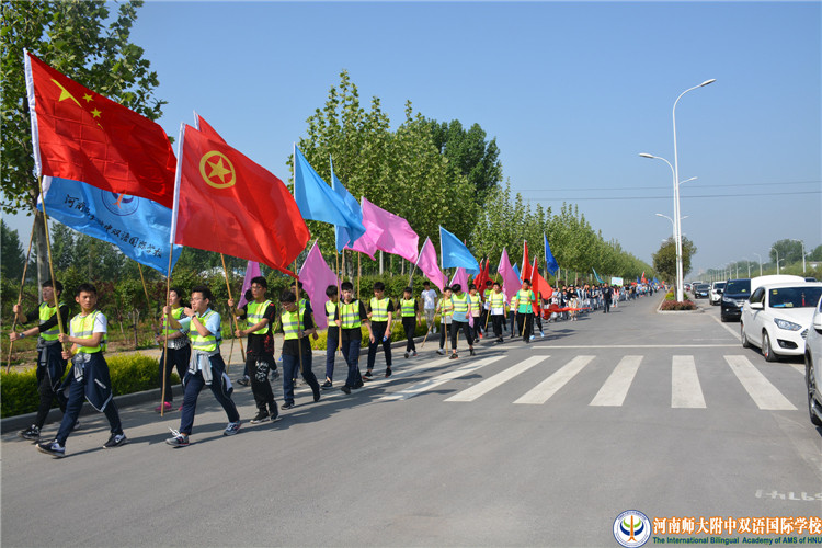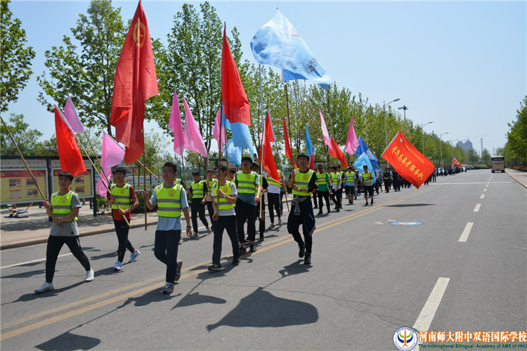 4月19日,作為學(xué)校課外特色活動之一的“青春·勵志”遠(yuǎn)足活動圓滿落下帷幕。雙語國際學(xué)校初一、高一和國際部的師生共計850余人從學(xué)校出發(fā),沿平原路一路東行,來到平原湖,在河南師范大學(xué)新聯(lián)學(xué)院就餐后,順利返校,這次遠(yuǎn)足來回里程達(dá)27公里。
