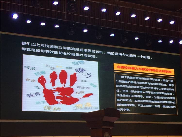 “加強(qiáng)未成年人普法教育,預(yù)防未成年人違法犯罪”是河南師大附中雙語(yǔ)國(guó)際學(xué)校常抓不懈的基礎(chǔ)性工作,為進(jìn)一步加強(qiáng)青少年法制教育,增強(qiáng)青少年的法律意識(shí)和自我防范意識(shí),營(yíng)造文明和諧的校園環(huán)境,2018年9月18日下午,河南師大附中雙語(yǔ)國(guó)際學(xué)校特邀請(qǐng)新鄉(xiāng)市中級(jí)人民法院第三庭(少年法庭)的汪劍法官,為全校學(xué)生做法制教育專題講座。