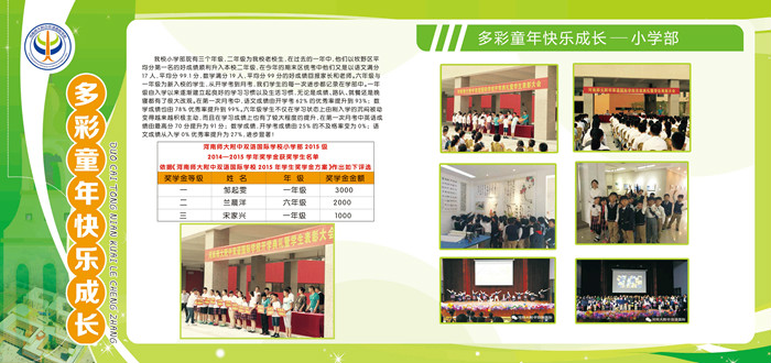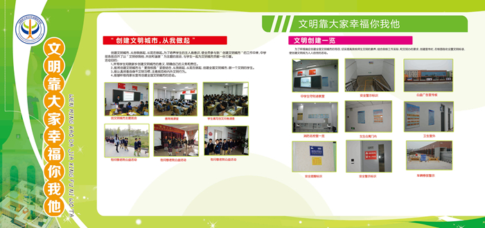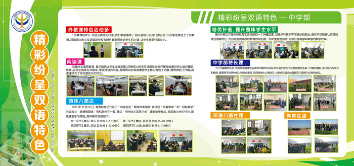 濃郁的校園文化熏陶人,樸實(shí)、敦厚的校風(fēng)感染人,先進(jìn)的辦學(xué)理念教育人,和諧、融洽的環(huán)境氛圍影響人。以下二十四面展示充分介紹了我校濃厚的文化風(fēng)采,獨(dú)特的教育魅力。