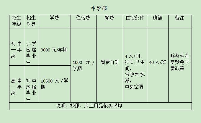 1.市區(qū)學生,中招報考雙語國際學校,考試成績達到附中或一中免費錄取分數(shù)線并被雙語國際學校的;本校初中畢業(yè)生,報考本校高中部,成績低于附中或一中免費錄取分數(shù)10分以內并被本校錄取,免三年學費。